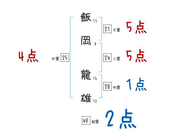 飯岡龍雄さんの画数の鑑定結果