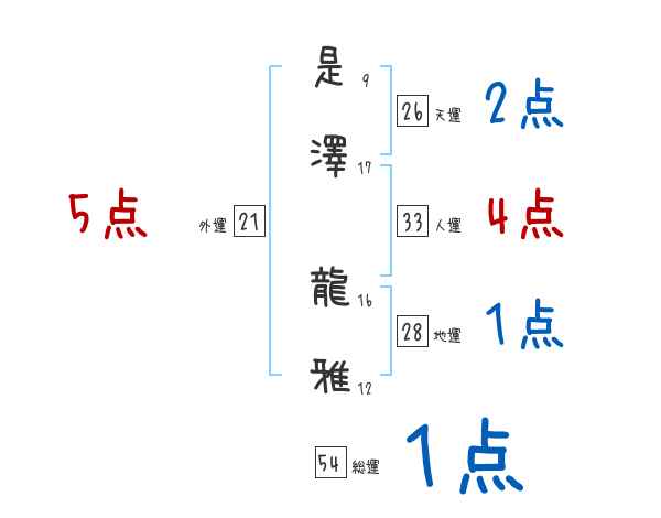 是澤龍雅さんの画数の鑑定結果