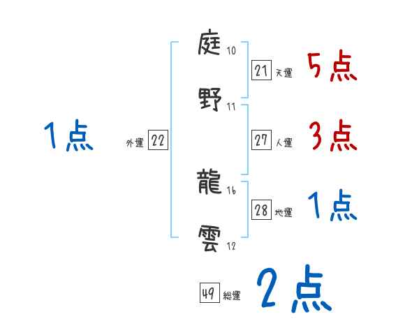 庭野龍雲さんの画数の鑑定結果