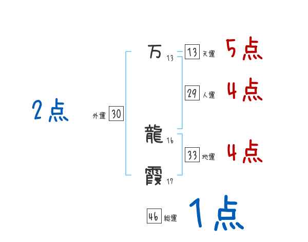 万龍霞さんの画数の鑑定結果