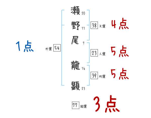 家系が持つ宿命的な運勢を表します。祖先から受け継いだ苗字ですので自分の力が及びません。家柄を象徴します。