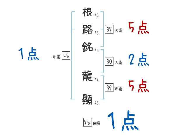 根路銘龍顯さんの画数の鑑定結果