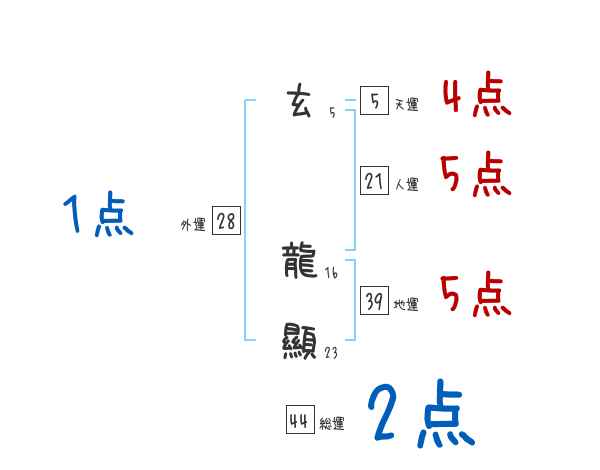 玄龍顯さんの画数の鑑定結果