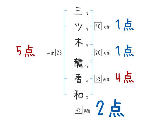 三ツ木龍香和さんの画数の鑑定結果