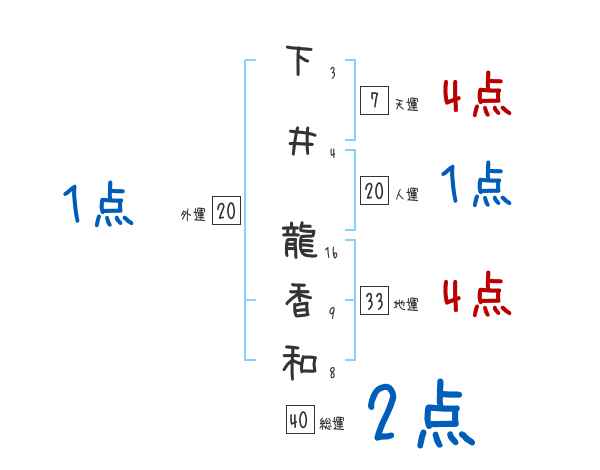 下井龍香和さんの画数の鑑定結果