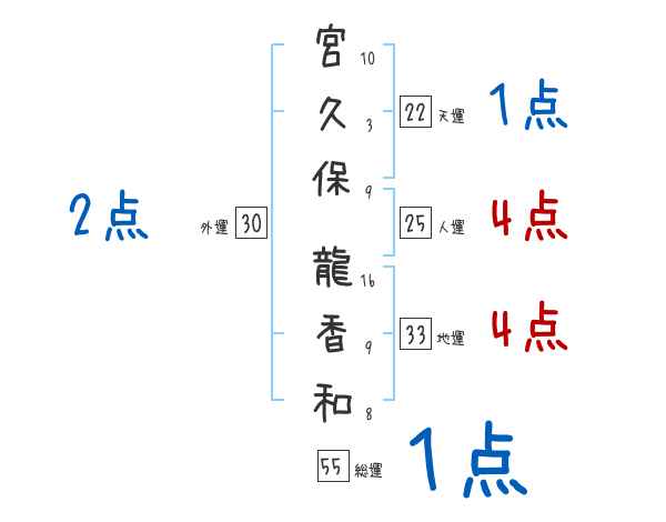 宮久保龍香和さんの画数の鑑定結果