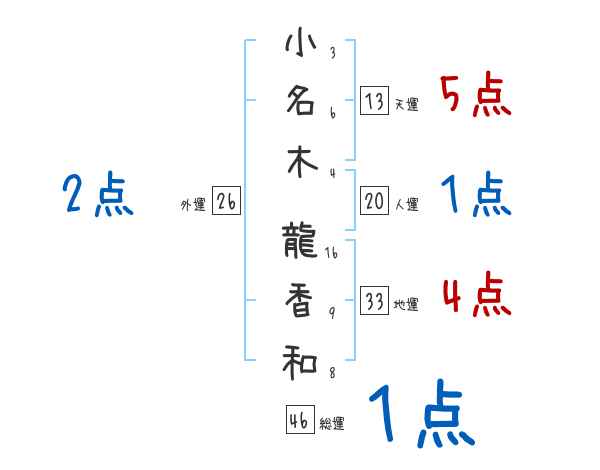 小名木龍香和さんの画数の鑑定結果