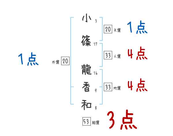 小篠龍香和さんの画数の鑑定結果