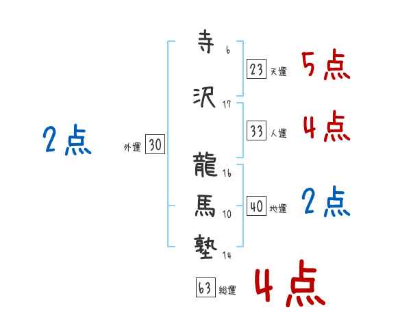家系が持つ宿命的な運勢を表します。祖先から受け継いだ苗字ですので自分の力が及びません。家柄を象徴します。