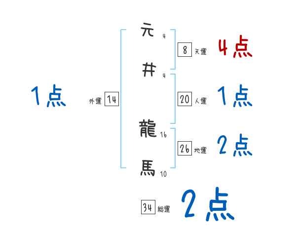 元井龍馬さんの画数の鑑定結果