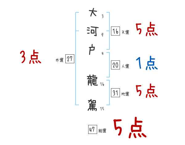 大河戸龍駕さんの画数の鑑定結果