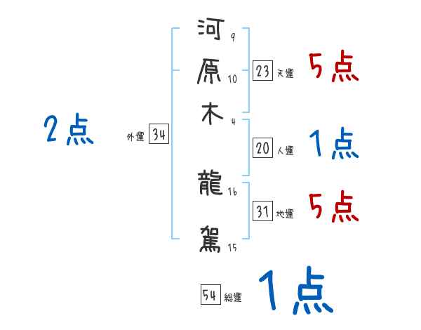 河原木龍駕さんの画数の鑑定結果