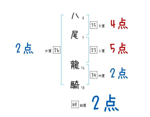 八尾龍騎さんの画数の鑑定結果
