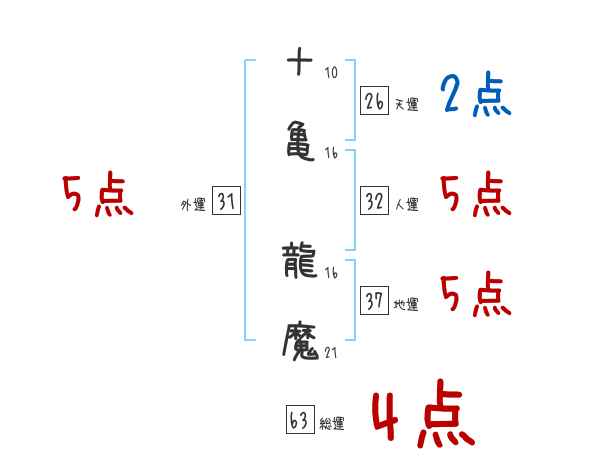 十亀龍魔さんの画数の鑑定結果