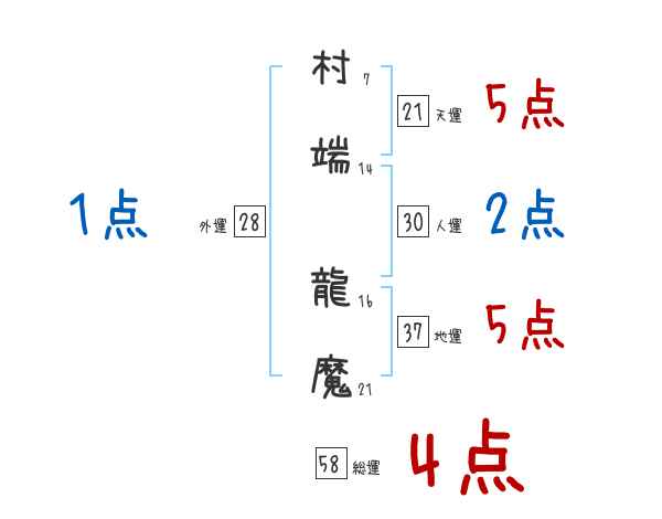 村端龍魔さんの画数の鑑定結果