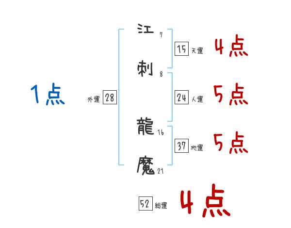 江刺龍魔さんの画数の鑑定結果