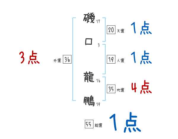 磯口龍鵬さんの画数の鑑定結果
