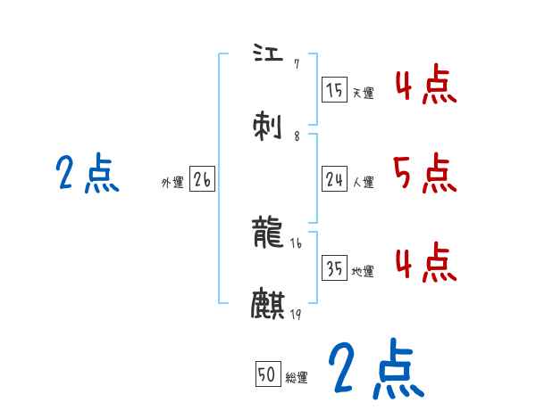 江刺龍麒さんの画数の鑑定結果
