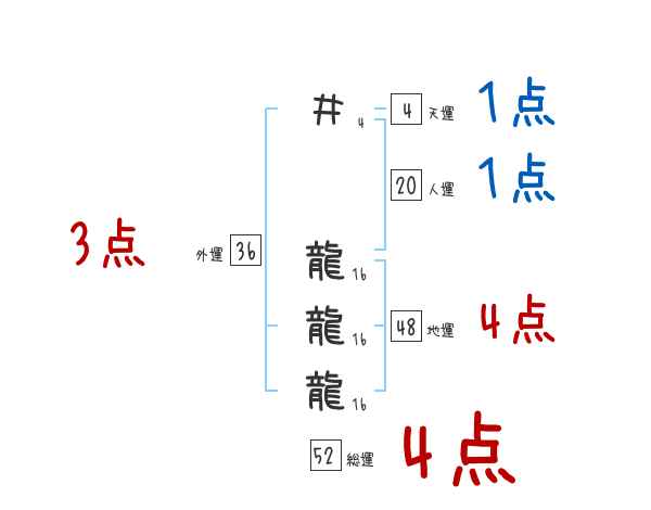 天運![]() | 井龍龍龍さんの天運は4画の1つ星!感情が不安定で苦労するかも。周囲との協調を心掛けましょう。 家系が持つ宿命的な運勢を表します。祖先から受け継いだ苗字ですので自分の力が及びません。家柄を象徴します。 |