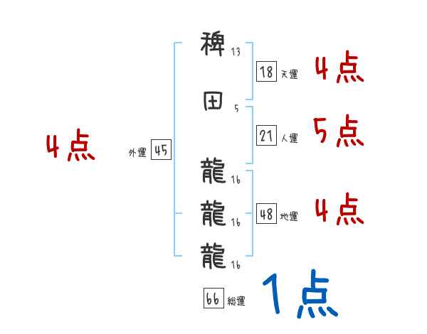 天運![]() | 稗田龍龍龍さんの天運は18画の4つ星!情熱的で剛気。忍耐力があり信頼される。 家系が持つ宿命的な運勢を表します。祖先から受け継いだ苗字ですので自分の力が及びません。家柄を象徴します。 |
