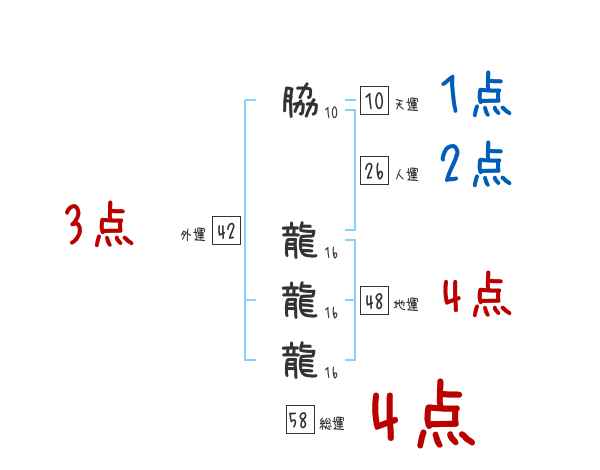天運![]() | 脇龍龍龍さんの天運は10画の1つ星!不安を感じやすい傾向。ストレスを抱えないように注意しましょう。 家系が持つ宿命的な運勢を表します。祖先から受け継いだ苗字ですので自分の力が及びません。家柄を象徴します。 |
