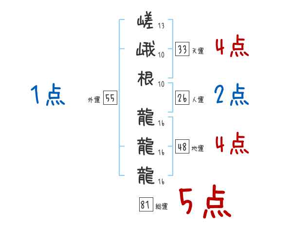 嵯峨根龍龍龍さんの画数の鑑定結果