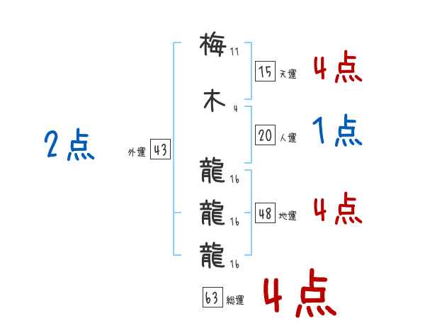 天運![]() | 梅木龍龍龍さんの天運は15画の4つ星!人徳があり出世する。順調に物事を進め円満な人生。 家系が持つ宿命的な運勢を表します。祖先から受け継いだ苗字ですので自分の力が及びません。家柄を象徴します。 |