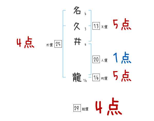 地運![]() | 名久井龍さんの地運は16画の5つ星!人望が厚く大きく発展する。逆転成功が見える。 個性を表す基礎的な運勢です。性格形成や対人関係、行動力など家庭環境に影響されます。主に誕生してから20歳くらいまでの若年期の運勢を表します。 |