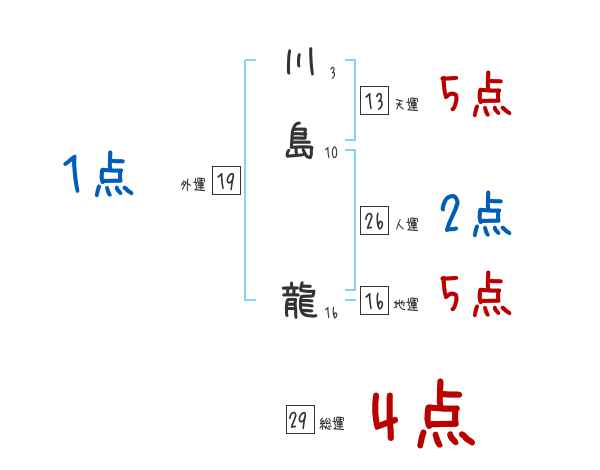 川島龍さんの画数の鑑定結果