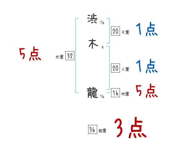 外運![]() | 渋木龍さんの外運は32画の5つ星!柔軟性があり成功する。チャンスが多く金運が良い。 生活面を象徴する運勢です。外部から受ける影響力を表し、結婚運、家庭運や職場、環境への順応性を表します。 |