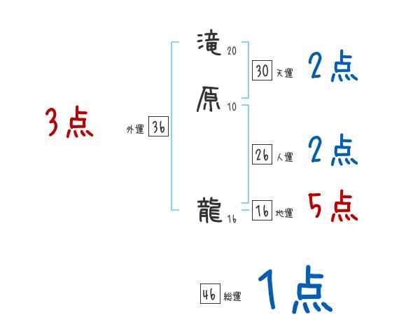 滝原龍さんの画数の鑑定結果